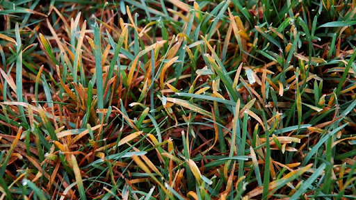 Pythium blight initially shows itself as 1- to 3-inch orange-colored spots on your lawn. In some cases, the outer edges of these spots have light-gray rings early in the morning. As humidity remains high, the spots will start growing cobweb-like fluffy masses of mycelium.